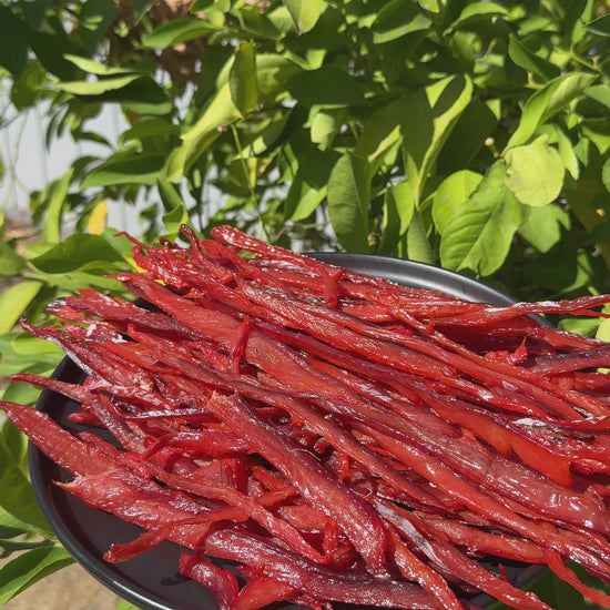 Thin strips of dried chum salmon — fragrant, tender, and perfectly dried.