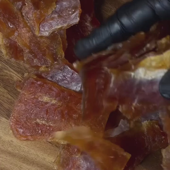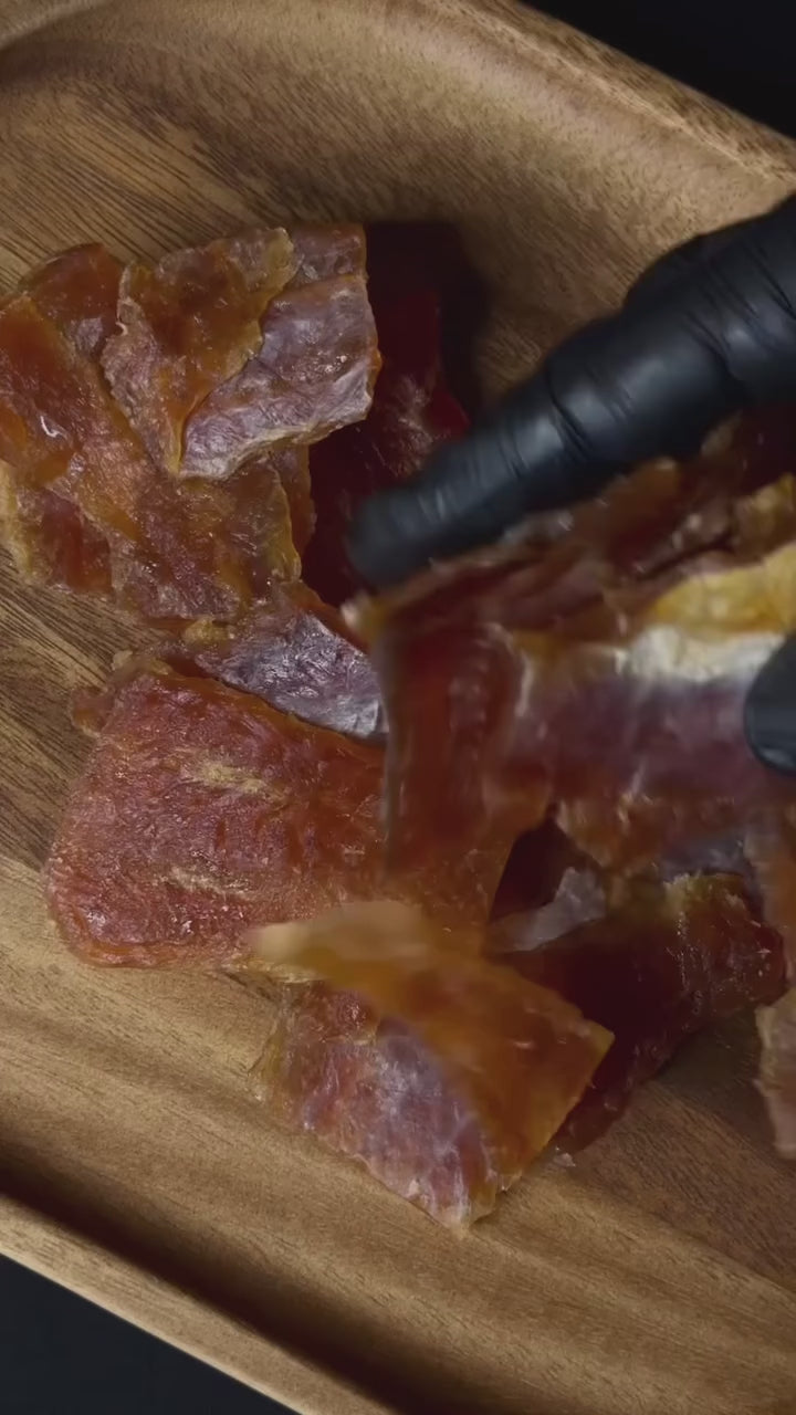 Presentation: dried fish pieces, ready to eat.
